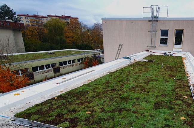 UHERSKÉ HRADIŠTĚ – Střechy Základní školy Za Alejí po rekonstrukci doslova ožily. Nyní je z většiny tvoří vegetace, která bude zadržovat část dešťových vod.