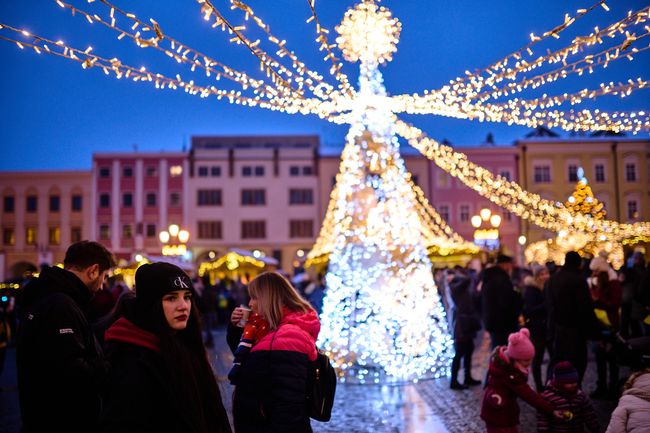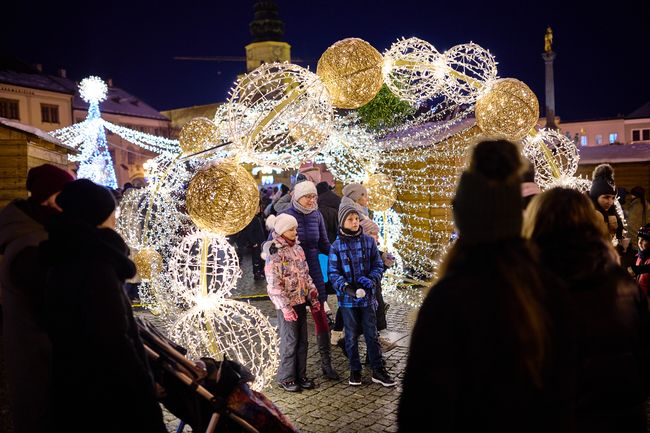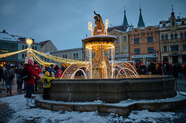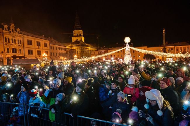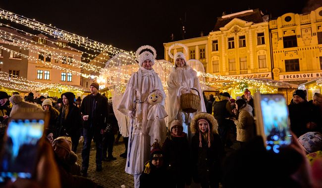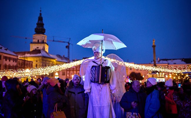 KROMĚŘÍŽ – Zahájení vánočního programu Šťastné a Veselé přilákalo na Velké náměstí davy návštěvníků. Přivítala je nejen slavnostní světelná výzdoba, ale i stánky s rozmanitým sortimentem a kulturní program s anděly na chůdách a vystoupením písničkáře Pokáče.