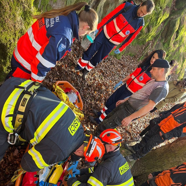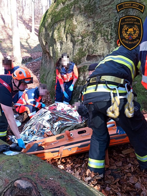 Na místo vyrazila jednotka hasičů z Otrokovic a lezecké družstvo profesionálních hasičů ze Zlína. „Hasiči poskytli zraněnému tepelný komfort a uložili jej do vakuové matrace. Pomocí vanových nosítek byl muž snesen z nepřístupného terénu a následně převezen speciálním technickým automobilem lezců až k vozu zdravotnické záchranné služby,“ popsal mluvčí hasičů Pavel Řezníček.