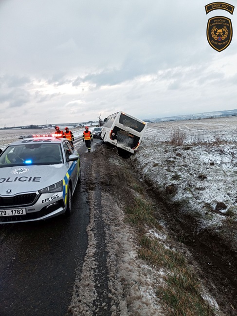 ZLÍNSKO – Nepříjemný zážitek za sebou mají cestující autobusu, který včera před desátou hodinou dopoledne havaroval do příkopu u Napajedel. Ven je museli dostat hasiči.