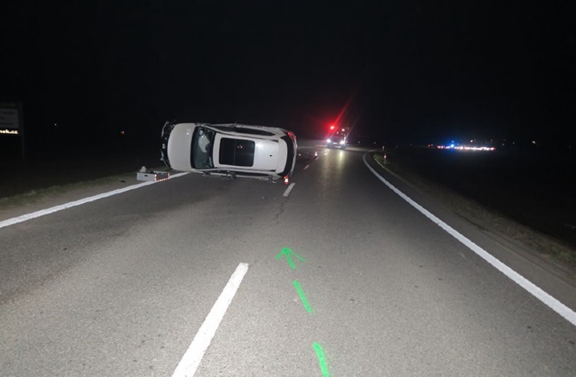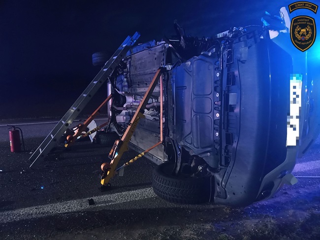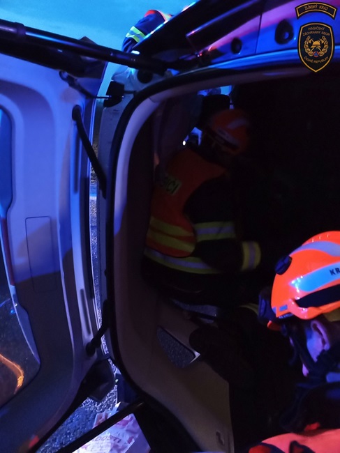 Po nehodě zůstalo jedno auto v poli a druhé na boku na silnici. Řidička z bílého vozidla se nemohla dostat ven. „Hasiči vozidlo stabilizovali a vyprostili ženu pátými dveřmi bez použití hydraulického vyprošťovacího zařízení,“ sdělil mluvčí hasičů David Martinec.