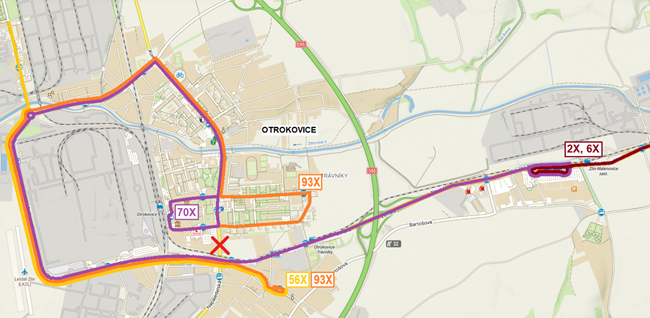 Linka 93 v úseku Trávníky-škola – Kvítkovice-náves 2. dubna nepojede. Cestující mohou využít přestup u železniční stanice z linky 93X na linku 70X, která zastavuje na zastávce Kvítkovice-Zlínská.