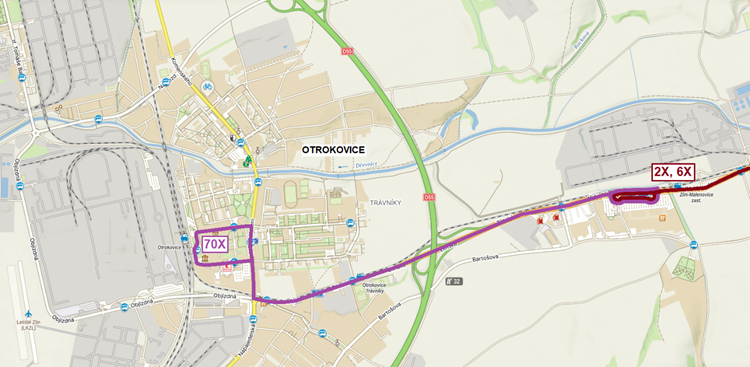 Ve dnech od 2. do 5. dubna nezastaví autobusy linky 70X ve směru jízdy na Otrokovice na zastávce Malenovice-obch. zóna.