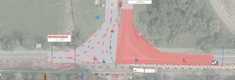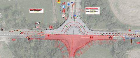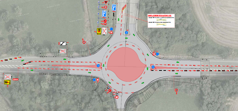 Okružní křižovatka bude čtyřramenná s vnějším průměrem 42 metrů. Šířka okružního pásu bude 5,5 metru a šířka prstence 1,5 metru. Vjezdové i výjezdové větve okružní křižovatky oddělí dělící ostrůvky.