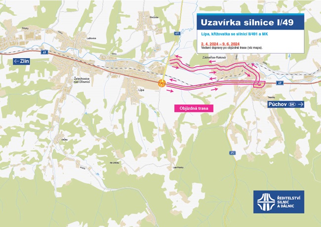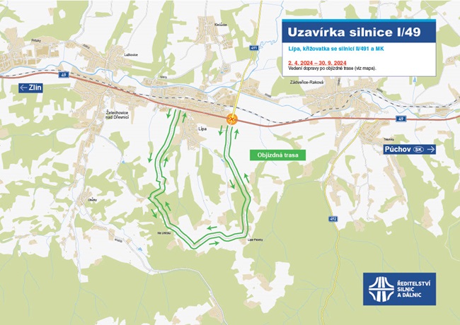 Provoz na silnici zůstane po celou dobu obousměrný a uzavřena bude vedlejší komunikace ve směru Lípa – Paseky. „Práce máme rozděleny na pět etap. V prvních třech fázích nebude možné ve směru ze Zlína odbočit do Slušovic. Objízdná trasa povede přes Zádveřice,“ sdělil ředitel zlínské správy ŘSD Karel Chudárek.