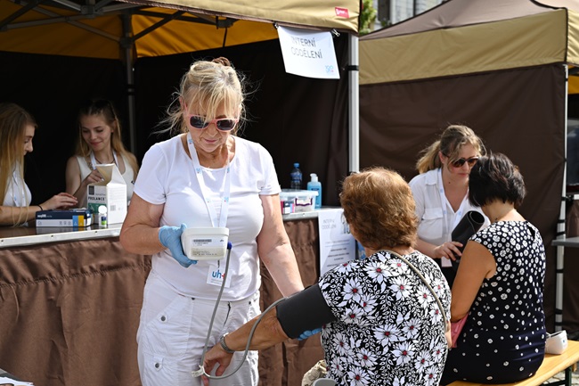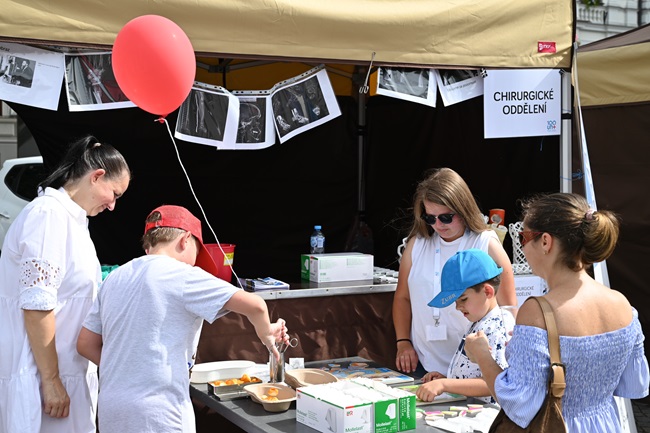 Nejmenší návštěvníky neodradily ani vysoké letní teploty a s radostí využili všechny přichystané atrakce. Náměstím se tak proháněly princezny, víly, motýlci i Spidermani, nadšení vyvolala bublinová show i předvedení klasické pohádky O perníkové chaloupce. S úspěchem se také setkaly preventivní programy v podobě měření krevního tlaku, cukru či nácvik první pomoci. O doplnění energie a dodržení pitného režimu se postarala stanoviště s dobrotami přímo z nemocniční kuchyně.