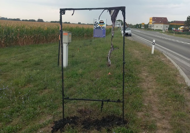 Bannery jsou poškozeny barevným sprejem. Jeden z nich někdo zapálil a zůstala z něj pouze konstrukce. Škoda prozatím nebyla přesně vyčíslena. „Policisté zahájili úkony trestního řízení pro podezření ze spáchání trestných činů poškození cizí věci a projev sympatií k hnutí směřujícímu k potlačení práv a svobod člověka. V případě ztotožnění a odsouzení hrozí pachateli trest odnětí svobody až na tři roky,“ sdělila policejní mluvčí Monika Kozumplíková.