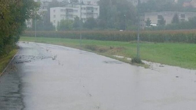 Ulici Tyršova od křižovatky s ulicí Husova ve směru k hřbitovu zatopila voda z pole. Městská policie komunikaci uzavřela. „Teče tam hodně vody z polí. Museli jsme stanovit objízdnou trasu pro autobusy MHD na lince 51 a vynechat dvě pravidelné zastávky,“ informovala dispečerka Dopravní společnosti Zlín – Otrokovice Marcela Frýdlová.