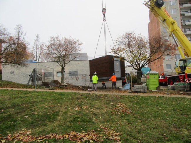 WC je na v Podlesí IV od středy 27. listopadu, k jeho osazení na připravenou základovou desku pomáhal jeřáb. Následovalo vydláždění přístupového chodníku a připojení inženýrských sítí, tedy elektřiny, kanalizace a vodovodu.