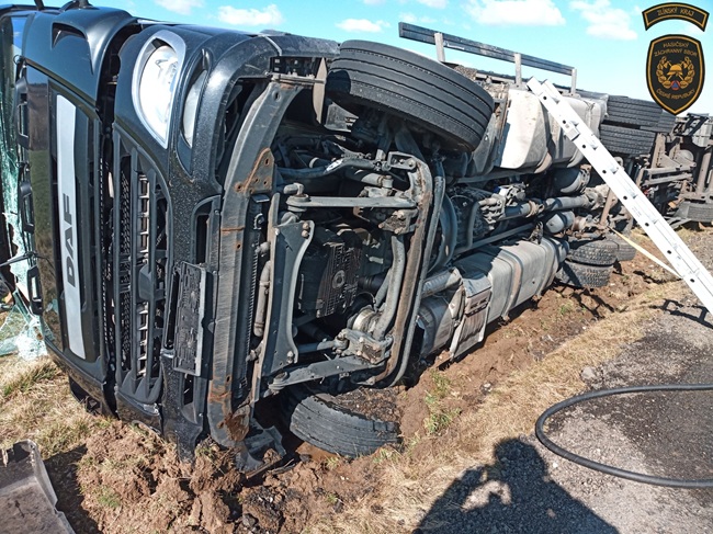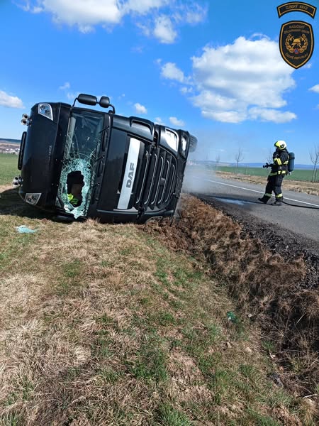 Hasiči z Uherského Brodu vyjeli před půl druhou k převrácenému kamionu, který následně začal hořet. Nezraněného řidiče pomohli dostat z kabiny svědci, kteří projížděli kolem. Ti také začali hasit pomocí přenosných hasících přístrojů. „Hasiči provedli stabilizaci nákladního vozidla a dohašení pomocí vysokotlakého proudu. Dále chlazení místa vzniku a kontrolu termokamerou. Usměrňovali dopravu a po dokončení prací předali místo Policii ČR,“ sdělil mluvčí hasičů David Martinec.