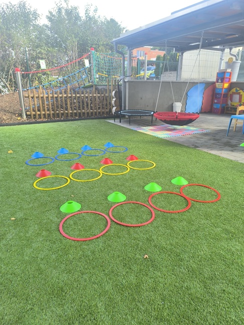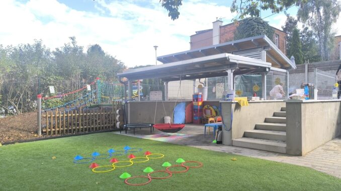 Tři měsíce trvající rekonstrukce proměnila původní svahovitý terén v atraktivní prostor pro až 70 dětí. Nová zahrada se nachází naproti školce přes boční ulici, je oplocená a obklopená nově vysazenou zelení. Horní část s umělým trávníkem slouží především ke sportovním aktivitám, zatímco spodní část nabízí zapuštěné pískoviště, menší pískoviště s prolézačkou a také prostor se skluzavkou a houpadly.