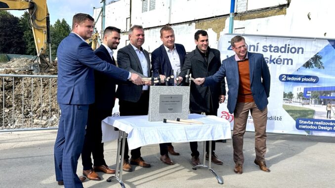 UHERSKÉ HRADIŠTĚ – Symbolickým poklepáním na základní kámen začal výstavba nového zimního stadionu v Uherském Hradišti, který nahradí starý objekt ze 70. let. Stavba má být hotová do jednoho roku a nabídne dvě ledové plochy a kapacitu pro 500 diváků.