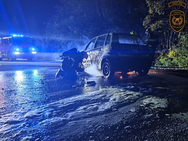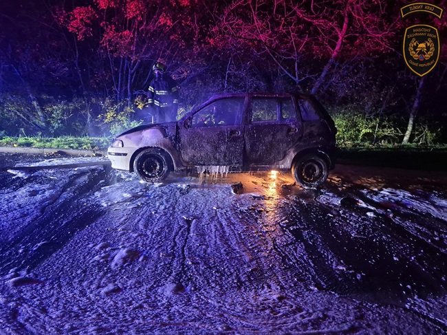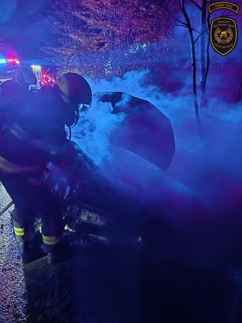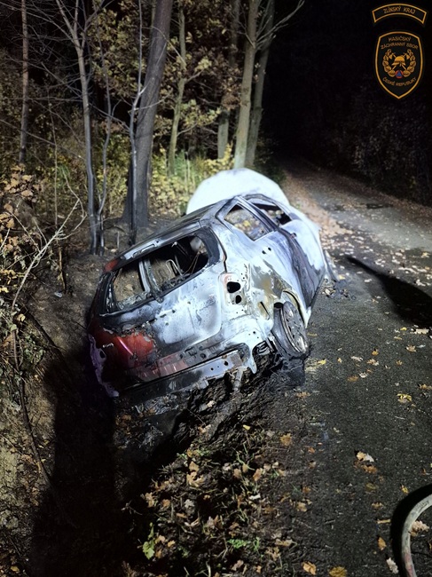 Tři jednotky hasičů vyjížděly o necelou hodinu později k Fryštáku. „Vozidlo bylo při příjezdu jednotek kompletně v plamenech a oheň se částečně rozšířil i na okolní porost. Hasiči požár zlikvidovali pomocí několika útočných proudů. Podle velitele zásahu se jednalo o dopravní nehodu s následným požárem,“ popsal Řezníček.