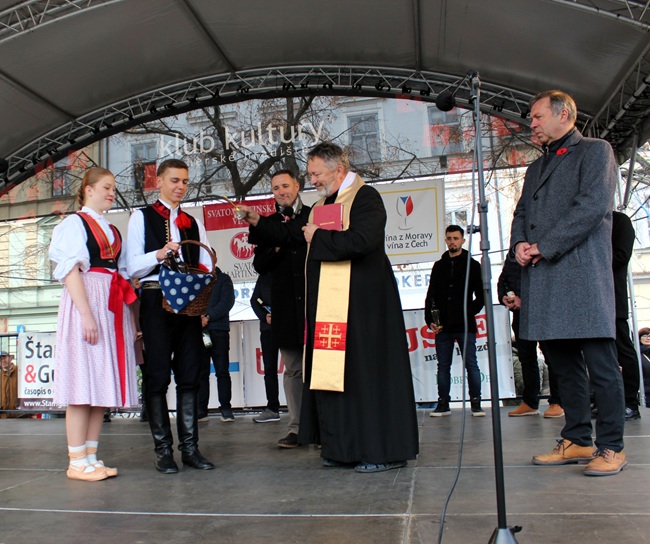 Děti i dospělí si užili kouzelnou podívanou – legendu o plášti a žebrákovi, veselou atmosféru a spoustu zážitků, které rozsvítily srdce Slovácka. Po příjezdu svatého Martina následovalo slavnostní požehnání Svatomartinského vína knězem P. Mgr. Milanem Palkovičem, který spolu se starostou města Stanislavem Blahou oficiálně přivítal nový ročník vín a oslavil jeho uvedení k veřejnosti.