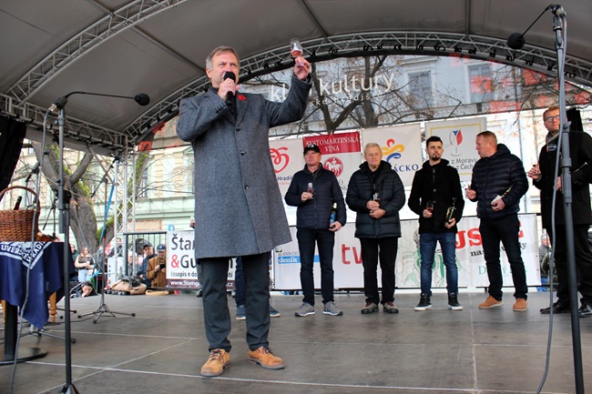 UHERSKÉ HRADIŠTĚ – Slavností plnou tradic, vína a radosti ožilo v úterý 11. listopadu Masarykovo náměstí v Uherském Hradišti. Přesně v 11 hodin a 11 minut přijel na bílém koni sám svatý Martin a pomohl spolu se starostou města, knězem, vinaři i folkloristy přivítat před zaplněným náměstím první vína letošního ročníku.