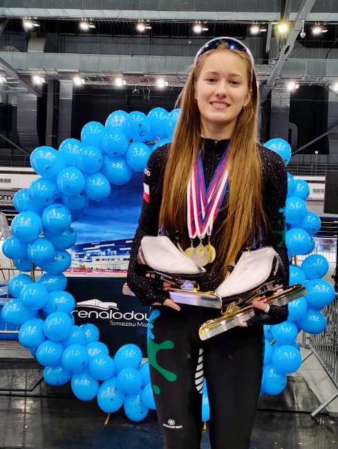 Ve dnech 17. a 18. prosince loňského roku se v polském městě Tomaszów Mazowiecki konalo mistrovství ČR juniorů v rychlobruslení na dlouhé dráze na jednotlivých tratích. Zlatou medaili na tratích 1000 m,1500 m a 3000 m vyhrála za juniorky do patnácti let Sára Hlušková z klubu BK Náchod. Ta vyhrála také stříbrnou na trati 500 m. „Za pozornost stojí její výkon na 3000 m, kde deklasovala svoje soupeřky a její náskok před druhou v pořadí činil šestadvacet sekund,“ dodává za město Oldřich Žďárek.
