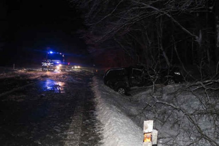 Muž jel krátce po deváté hodině od Slavkova. „Ve stoupání zřejmě nepřizpůsobil rychlost stavu vozovky. Tak se stalo, že na zledovatělé silnici dostal smyk, vyjel vpravo mimo komunikaci do zasněženého příkopu a poté narazil do dvou stromů,“ uvedla policejní mluvčí Milena Šabatová. Škoda byla vyčíslena na 200 tisíc korun.