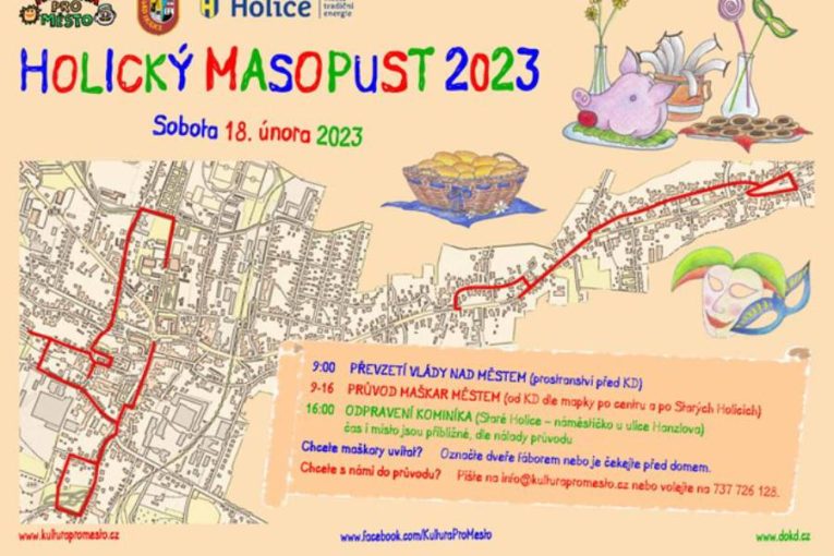 HOLICE – Centrem města směrem na Staré Holice vyrazí 18. února masopustní průvod. Na cestu se vypraví v devět hodin od Kulturního domu v Holicích.