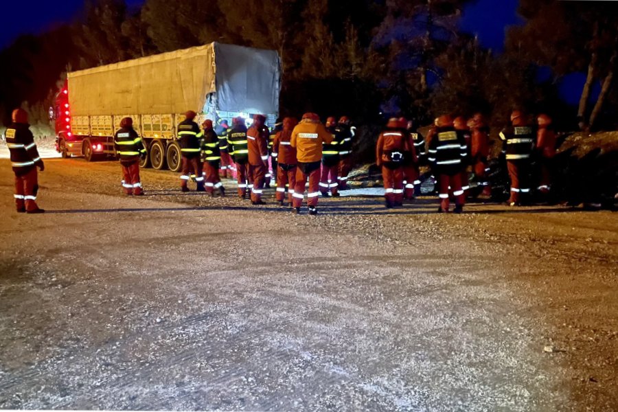 Jednotky si večer po příjezdu musely postavit základní tábor. Foto: HZS ČR Twitter