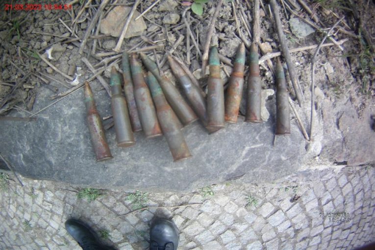 Muž na procházce s malým synem v Denisových sadech spatřil v trávě ležet náboj větší ráže. Obrátil se proto na tísňovou linku a na místo dorazili strážníci. Objevení střeliva na tak frekventovaném místě jim přišlo pozoruhodné a rozhodli se raději prohledat celý svah nad zídkou u cesty. „Dívali jsme se mezi křoví a listí a našli dalších jedenáct částečně zrezivělých nábojů,“ dodává tiskový mluvčí Jakub Ghanem. Hlídka se postarala o to, aby se ke střelivu nikdo nepřibližoval a nález předala policii.