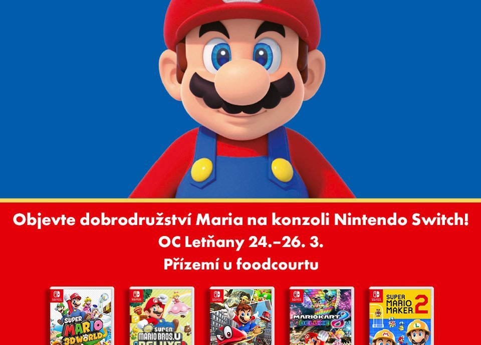 K dispozici jsou konzole Nintendo Switch s hrami jako Mario Kart 8 Deluxe, Mario Strikers: Battle League Football, Super Mario Maker a mnoho dalších. Pro milovníky pohybu jsou připraveny sporty jako badminton, tenis, bowling a volejbal. Návštěvníci mohou strávit celý den v OC Letňany a využít skvělé zábavy, kterou nabízí. Akce je vhodná pro děti i dospělé a koná se od 9 do 21 hodin, vstup je zdarma.