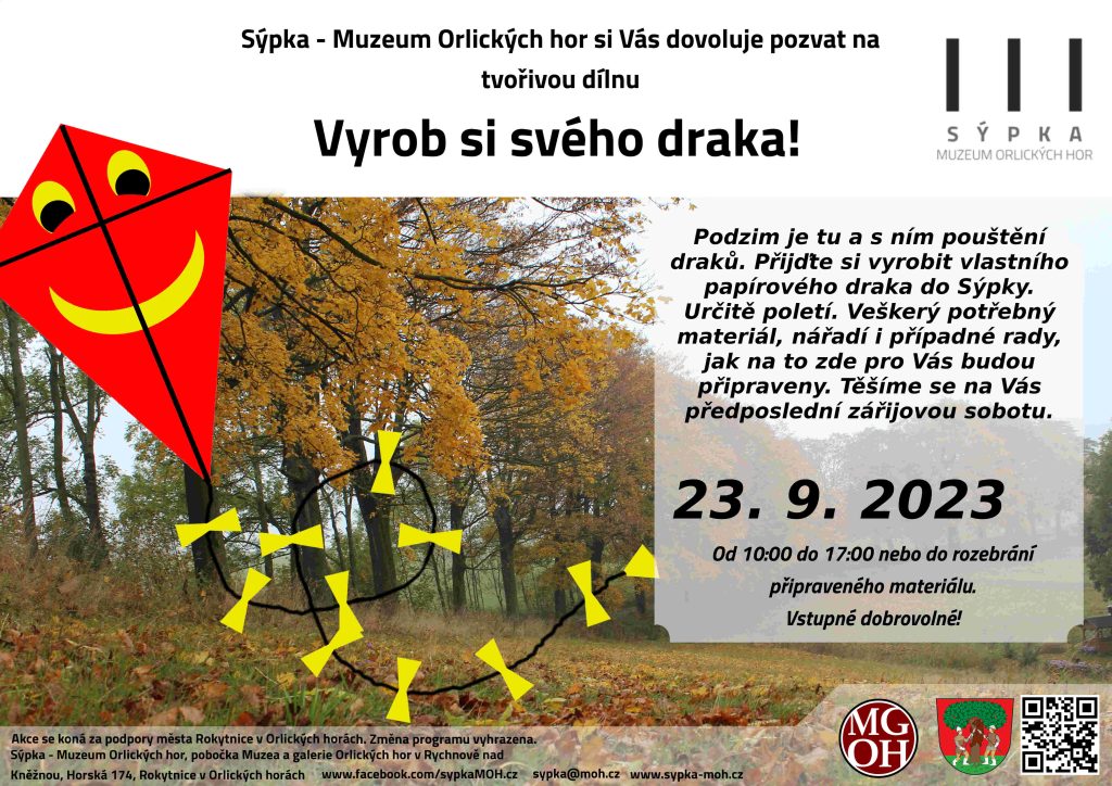 RYCHNOVSKO – Každý, kdo miluje plachtění draka po obloze, je vřele zván na akci do Rokytnice v Orlických horách. Přijďte si jednoho takového draka vyrobit, nemusíte si nic nosit, protože všechno pro vás bude na místě připravené.