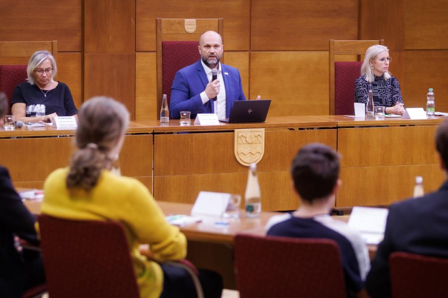 První zasedání se uskutečnilo v pondělí 16. října 2023 v Kulturním domě Radost.“ „Naše první pondělní setkání by se dalo nazvat seznamovacím. Probíhalo v přátelském duchu a vypadá to, že nám to spolu bude klapat. Myšlenku na školské zastupitelstvo jsem v hlavně nosil už nějakou dobu, a jsem rád, že se nám ji společně s kolegy podařilo realizovat. Často kolem sebe totiž slyším názory, že mladí se o dění ve městě ani komunální politiku nezajímají, nemají vize ani chuť o něčem rozhodovat, za něco nést zodpovědnost, či do problematiky proniknut hlouběji,“ sdělil havířovský primátor Josef Bělica. Doplnil, že mladí mnohdy nemají příležitost se do politického dění zapojit, a prostřednictvím nově vzniklého zastupitelstva tuto šanci dostanou.