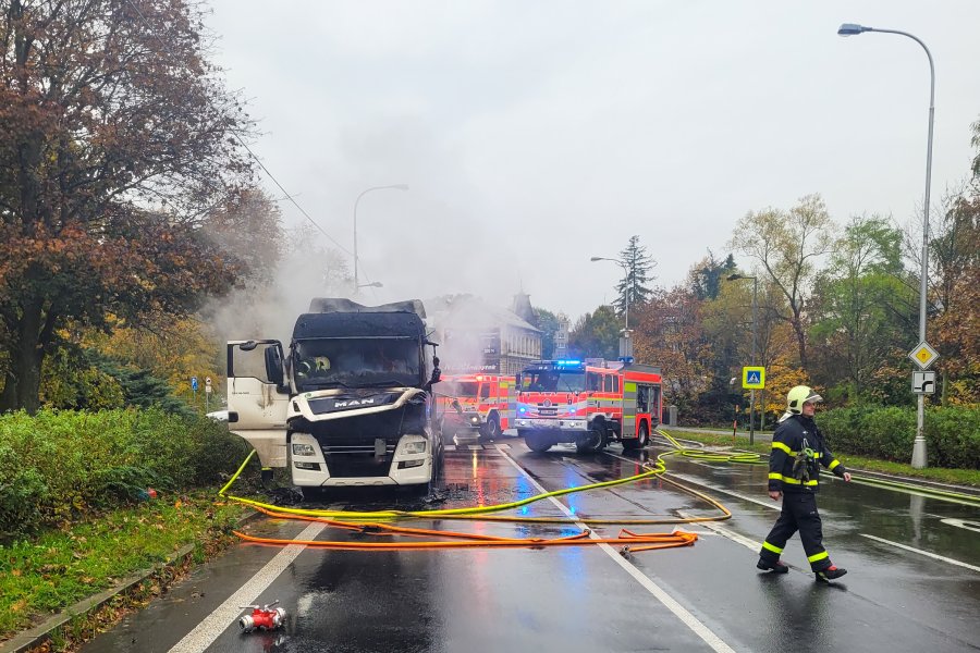 FOTO: V Bruntále hořel kamion, plameny sálaly vysoko do vzduchu!