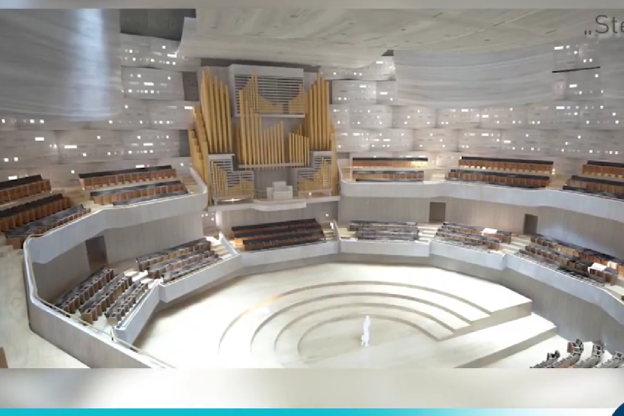 Architektonické návrhy koncertního sálu jsou známé již od roku 2019, kdy město vyhlásilo soutěž. Autory jsou studia Steven Holl Architects z New Yorku a Architecture Acts z Prahy. Projekt v roce 2021 prestižní americký magazín Architizer zařadil mezi deset nejočekávanějších staveb světa. Město se o výstavbu kvalitního sálu pokusilo již šestkrát, nejprve v 60. letech 19. století, naposledy v roce 1969. Zhotovitelem prvotních prací je sdružení firem IMOS Brno a. s. a IPS Třinec a. s. Celková realizace projektu jsou 4,1 miliardy korun. Cena koncertního sálu pak čítá 2,2 miliardy. Náklady jsou předběžné a orientační.
