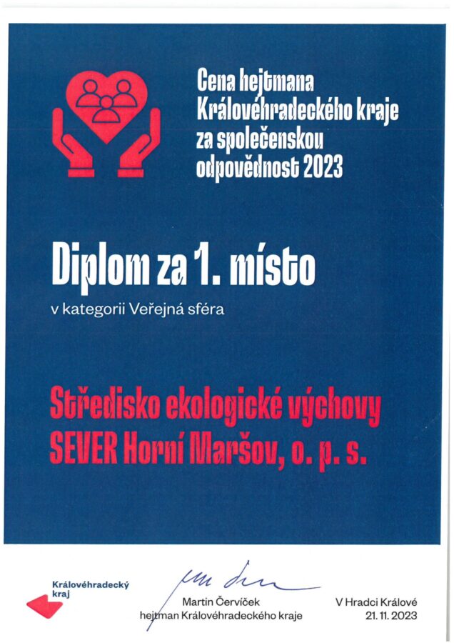SEVER získal 1. místo v soutěži Cena hejtmana Královéhradeckého kraje za společenskou odpovědnost 2023