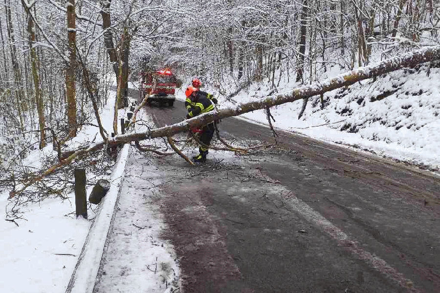Vydatné sněžení způsobilo padání stromů a mnoho nehod na silnicích