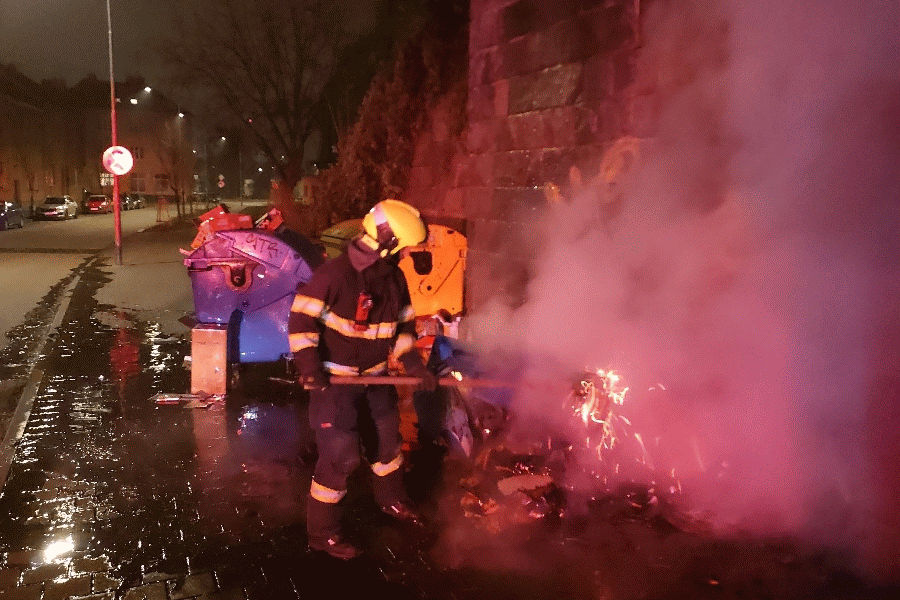 Silvestr jihomoravských hasičů: Škody na poškozených popelnicích jsou v desítkách tisíc