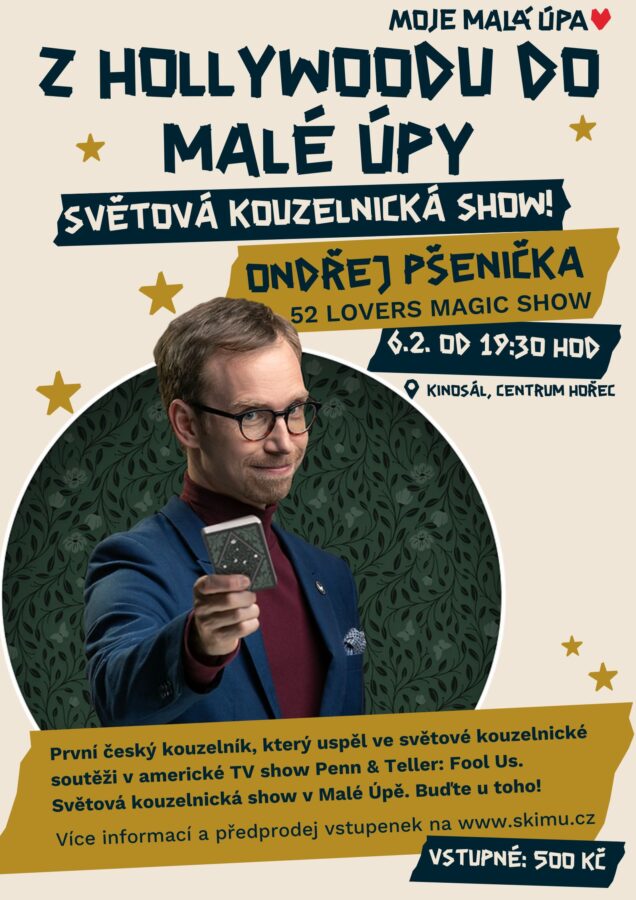 „Ondřej však svou zemi miluje a stejně tak hory, a tak budou mít možnost zhlédnout jeho show i diváci v Malé Úpě,“ láká k účasti na show za pořadatele Barbora Chmelíková.