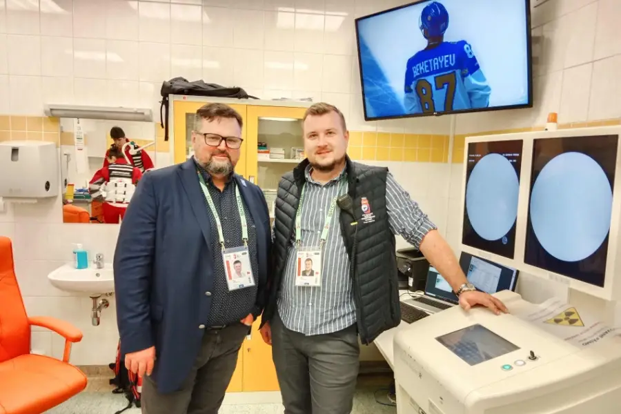 Ošetřovna je zhruba 20 metrů od ledové plochy. Fakultní nemocnice Ostrava ji vybavila počítačem se vzdáleným přístupem k nemocničnímu informačnímu systému, resuscitačním stolkem, vyšetřovacím stolem pro radiologického asistenta a také C-ramenem. „O tento přístroj je velký zájem, protože umí vyšetřovat stabilitu jak zápěstí, tak ruky i kolena. Jde o velkou poptávku ze strany týmových lékařů,“ popsal lékař Jiří Demel z Kliniky úrazové chirurgie a ortopedie FN Ostrava, který řídí a organizuje zdravotní péči pro ostravskou část turnaje.