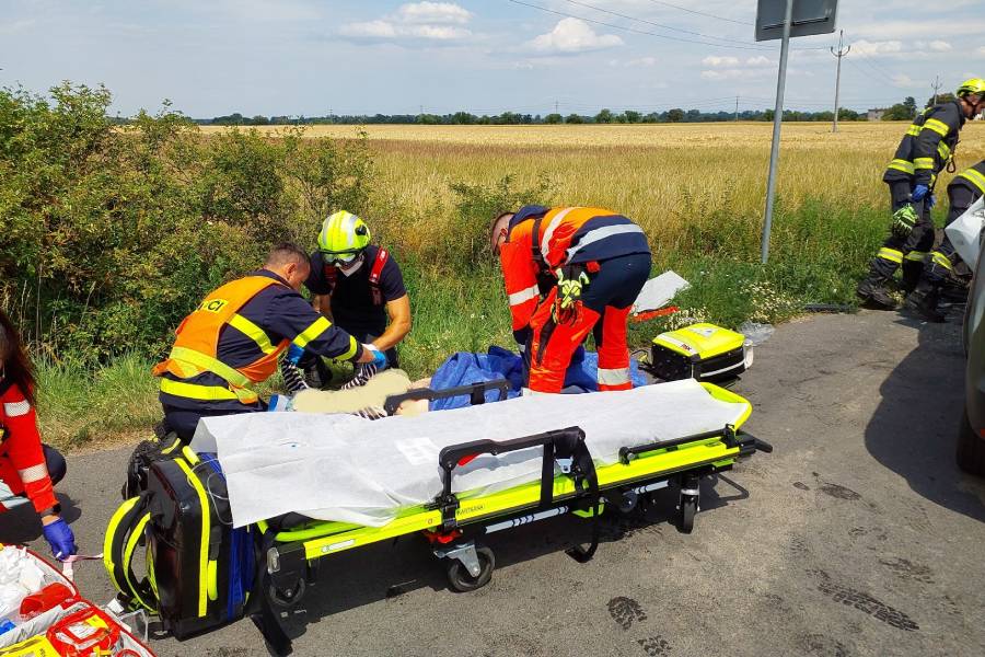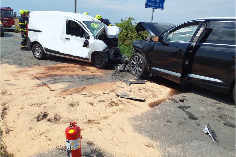 Všechny složky Integrovaného záchranného systému zasahovaly u dopravní nehody aut značky Dacia a Audi, který si vyžádal zranění dvou řidičů ve věku 22 a 46 let. Na místo přijeli dvě posádky záchranářů, policie, hasiči a vzlétl i vrtulník. Hasiči pomáhali s jeho navigací a také asistovali záchranářům při první pomoci. Vyprošťování nebylo nutné. „Mladší z řidičů byl letecky transportován do Fakultní nemocnice v Hradci Králové. Dechová zkouška ke zjištění přítomnosti alkoholu nebyla u něho na místě provedena, proto byl nařízen v nemocnici odběr krve,“ řekla mluvčí policie Andrea Muzikantová.