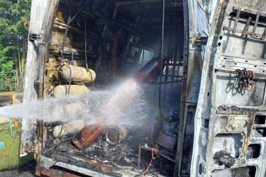 Vedle hořící dodávky stál i bagr, který naštěstí nechytl, ale museli ho ochlazovat, aby nedošlo k ještě větším škodám. Celý požár dostali pod kontrolu za dvanáct minut a dále ještě ochlazovali lahve. Proč k požáru došlo je nyní v šetření.