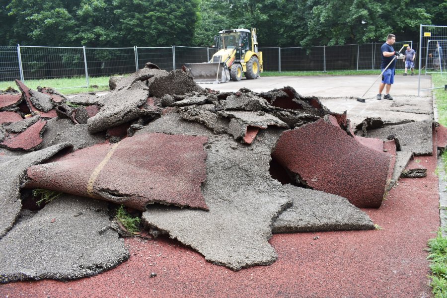 Původní umělý povrch se již začal trhat a docházelo k propadům. „Navíc hřiště mělo nedostatečné ochranné sítě a dostali jsme několik stížností občanů, že jim balóny létají až do oken. Zřídíme nové ochranné sítě, které tento stav napraví,“ uvedl primátor Frýdku-Místku Petr Korč. Nutné bylo také reagovat na nevhodné umístění hřiště, protože jeho část se nacházela v ochranných pásmech inženýrských sítí. Konkrétně se jedná o plynovod a telekomunikace. Plocha hřiště proto musela být zmenšena. Odstranění nevyhovujícího a poškozeného povrchu provedly technické služby, stejně jako pokládku nové odolnější svrchní umělé vrstvy. Hřiště opět bude nalajnováno na volejbal a streetbal a osazeno hokejbalovými brankami, streetbalovými koši a volejbalovými sloupky.
