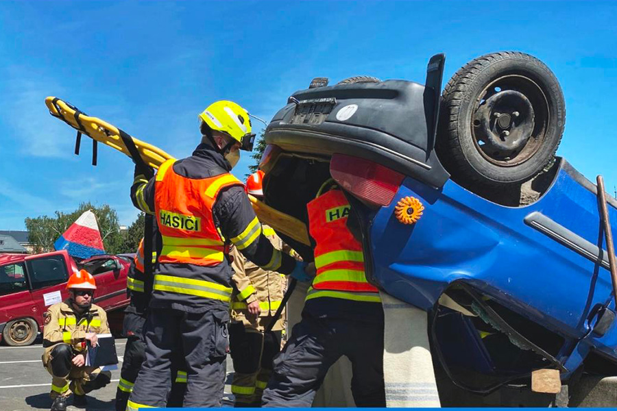 Ještě předtím museli zraněné z vraku nabouraného auta vyprostit hasiči. „Spolujezdce a řidiče z jednoho vozidla jsme museli vyprostit z vraku auta pomocí hydraulických nástrojů. Protože byly zcela zdeformované dveře na straně spolujezdce, odstřihli jsme hydraulickými nůžkami béčkový sloupek, odstranili jsme zadní dveře a vytvořili jsme tak přístup k oběma zraněným osobám,“ popsala mluvčí hasičů Lucie Balážová.