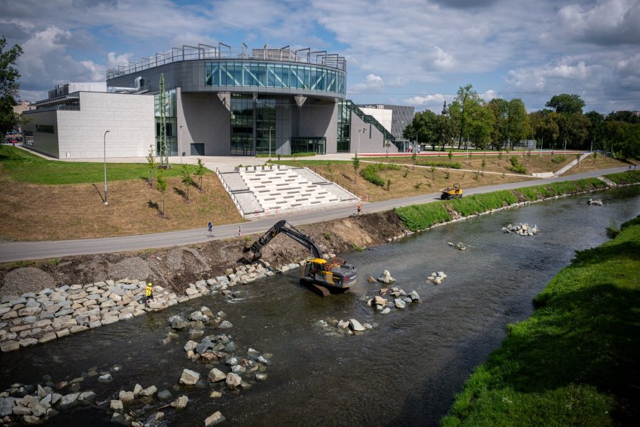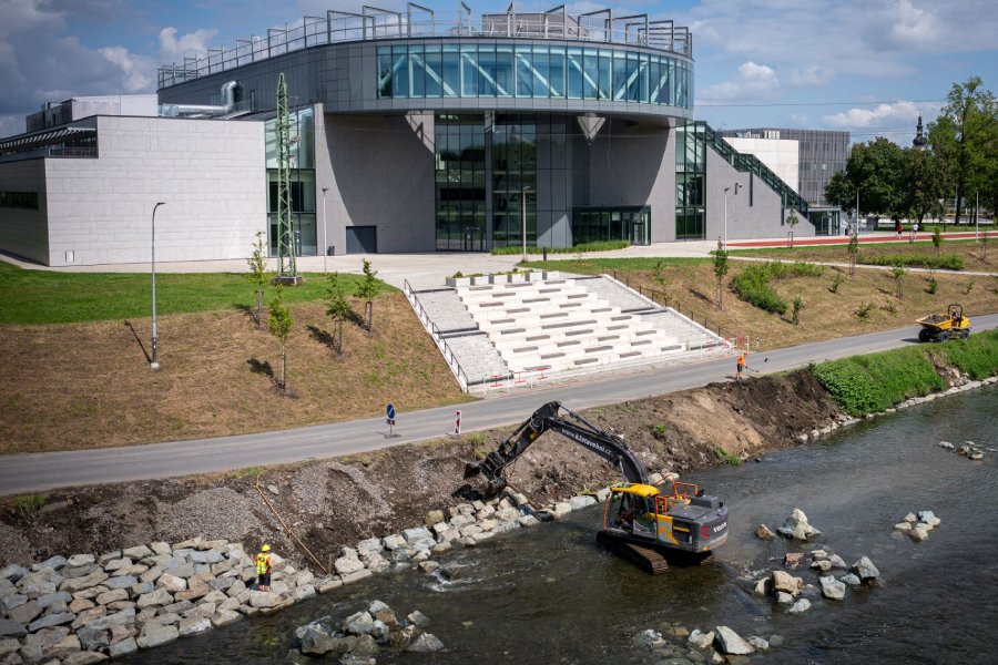 Lidé procházející podél Ostravice mohou pozorovat, jak stavební stroje usazují kameny, které břeh zpevní. Následně velké kameny doplní i ty menších rozměrů a vytvoří tak břeh dle návrhu architektů. Vzniknout by měl přívětivější prostor pro cyklisty i chodce, propojující univerzitní kampus a odpočinkovou zónu kolem řeky. V blízkosti nebudou chybět samozřejmě ani lavičky a osvětlení.