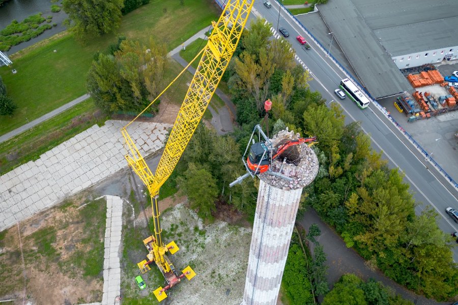 FOTO: Slezanský komín jde k zemi! Výhledu na baziliku už bránit nebude. Bourání odkazuje na sovětskou okupaci