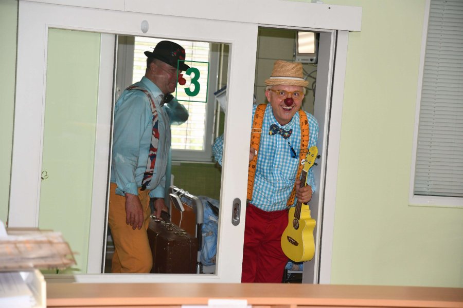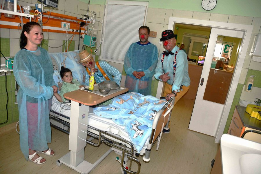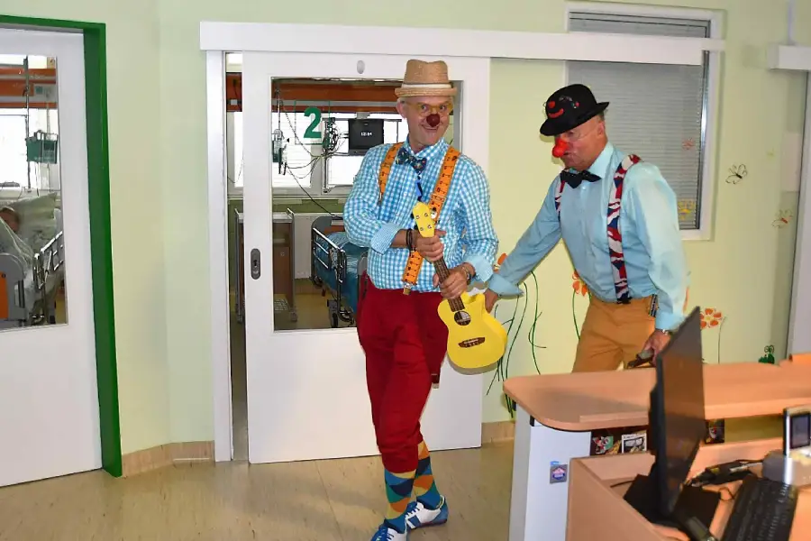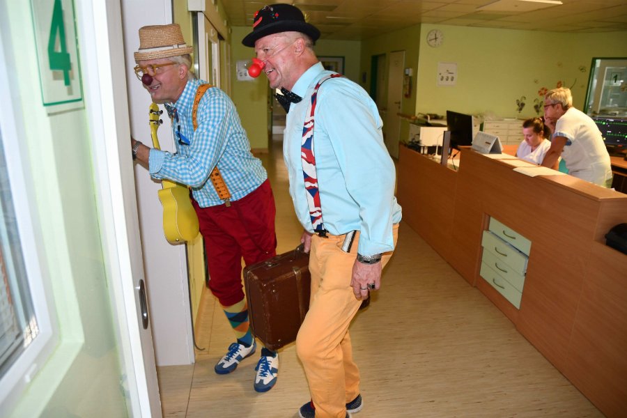 Klaun Čučululek společně s kolegou klaunem Arníkem 20. srpna na dětském oddělení krnovské nemocnice předvedli svůj repertoár. Tančili, zpívali, hráli hry, tvořili z balónků zvířátka, nebo si s malými pacienty jen tak povídali. Jejich kouzelný kufr byl plný bláznivých klaunských rekvizit a hraček.