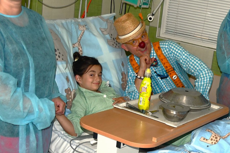Pro nemocniční klauny každá návštěva začíná opatrným nahlédnutím do pokoje. V této úvodní fázi klauni vyhodnotí aktuální emoce a psychické rozpoložení dětských pacientů, aby jim přizpůsobili program na míru. „Některé dítě rozesměje bláznivá klauniáda s písničkami pořádně nahlas, ale jinému zase vyhovuje klidné povídání, třeba i šeptem nebo ticho s prvky pantomimy,“ popsal J. Rafał Wojas svou profesi nemocničního klauna, který vystupuje jako Čučululek.