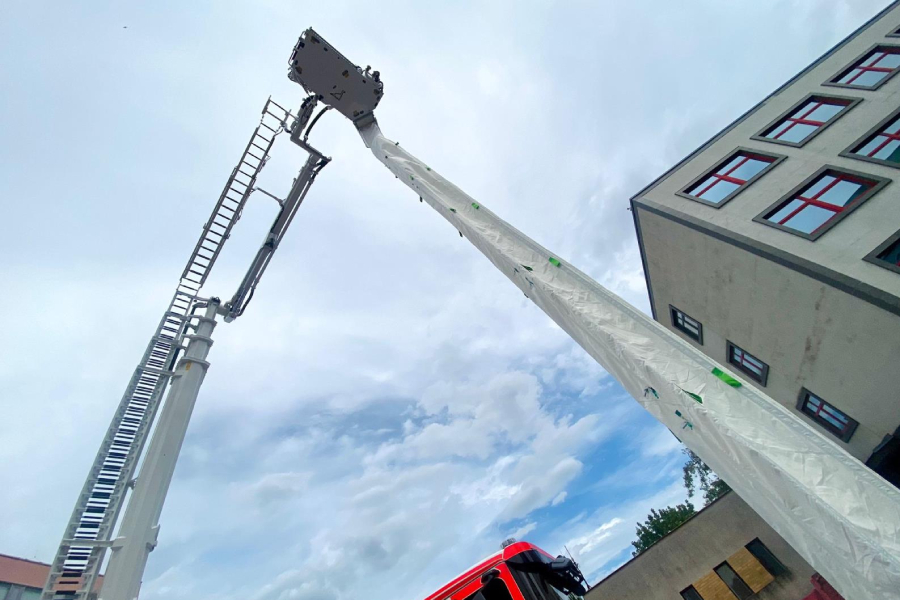 PARDUBICKÝ KRAJ – Záchranný bílý evakuační rukáv používají hasiči k evakuaci lidí, když už není jiná možnost. Montuje se na koš výškové techniky.
