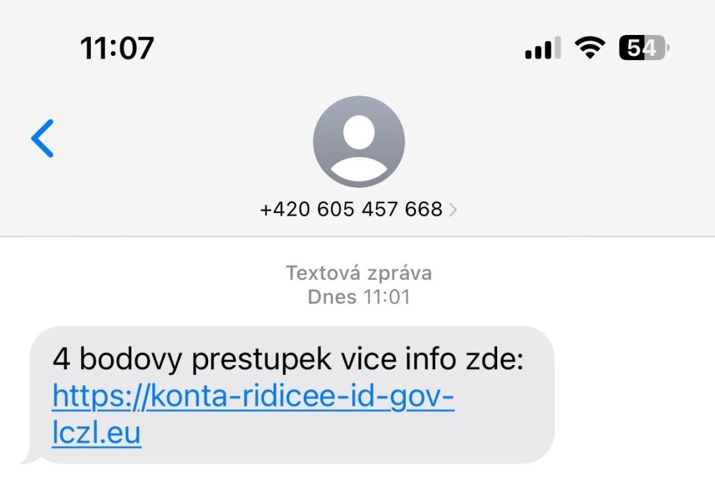 Podvodná SMS o přestupku. Zdroj: gov.cz