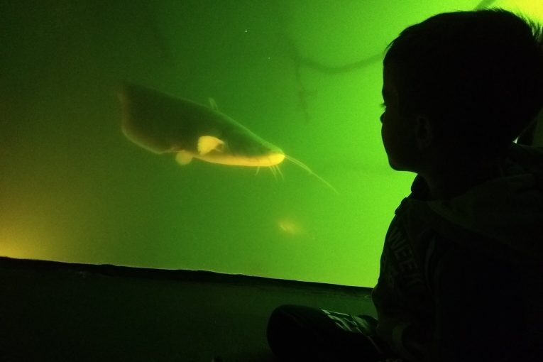 Pokud přízemí nabízí zajímavou podívanou, první podzemní podlaží představuje již zcela nevídanou atrakci. Prosklený tunel, který je svou délkou osm metrů a šířkou dva metry ojedinělým experimentem v rámci celé Evropy, umožňuje nahlédnout do království vodní říše z dosud nepoznaných perspektiv. Zatímco po levé straně brázdí sladkovodní expozici ryby chladných vod, horských potoků a řek, jako jsou jelci, lipani, mníci, pstruzi, parmy a oukleje, pravá strana patří především velkým rybám. Typickým obyvatelem je zde kapr, štika, candát či sumec. „Raritou naší expozice jsou jeseteři, což jsou tažné ryby, které dříve migrovaly z Černého moře až do řeky Moravy. Mezi jeseterem ruským, malým či hvězdnatým se vyjímá vyza velká, největší sladkovodní ryba na světě. U nás jich je několik a dosahují délky téměř dva metry,“ doplňuje Kroča. Druhé podzemní patro pak nabízí pohled do života v hlubině i se zimováním ryb pod ledem. Na stropě je promítán život kolem vody i s hlasy vodních ptáků, na podlaze je promítána tekoucí voda, v níž plavou ryby a další vodní živočichové.