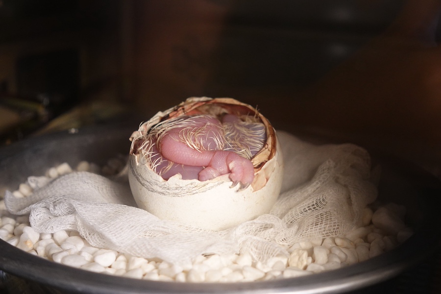 Ptáče se vyklubalo v ranních hodinách 11. listopadu po 56 dnech inkubace. Na tento okamžik napjatě čekali filipínští i liberečtí zoologové. Úspěšnému vylíhnutí ale předcházely dlouhodobé přípravy a procesy. Klíčovou roli v úspěchu sehrálo například vybudování nové detašované specializované odchovny uprostřed tropického deštného lesa a přesunutí chovných ptáků z voliér ze záchranného centra do této klidné ptačí rezervace.
