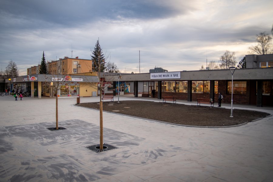 Plochu pokryla velkoformátová dlažba. Práce s takovou dlažbou, a zejména její řezání je velmi náročné. Radnice se rozhodla rozšířit hlavní zelené plochy podél výškového bytového domu. Zmizely sušáky na prádlo, a stávající chodník. Nově místem vede nový chodník ze zatravňovacích dlaždic, doplněný o alej stromů. „Vjezd aut na plochu jsme nepovolili již před rekonstrukcí, neplánujeme jej povolit ani nyní. Preferujeme volný pohyb chodců na této ploše. Věříme, že pozvednutí estetiky tohoto veřejného prostoru, může pozitivně zapůsobit také na tamní prodejce. Živnostníkům nabízíme semináře a dotované programy na úpravu vnějšího vzhledu provozoven, záleží nám na tom, aby obchody působily jednotným a kultivovaným dojmem,“ sdělil náměstek primátora Frýdku-Místku Jiří Kajzar.
