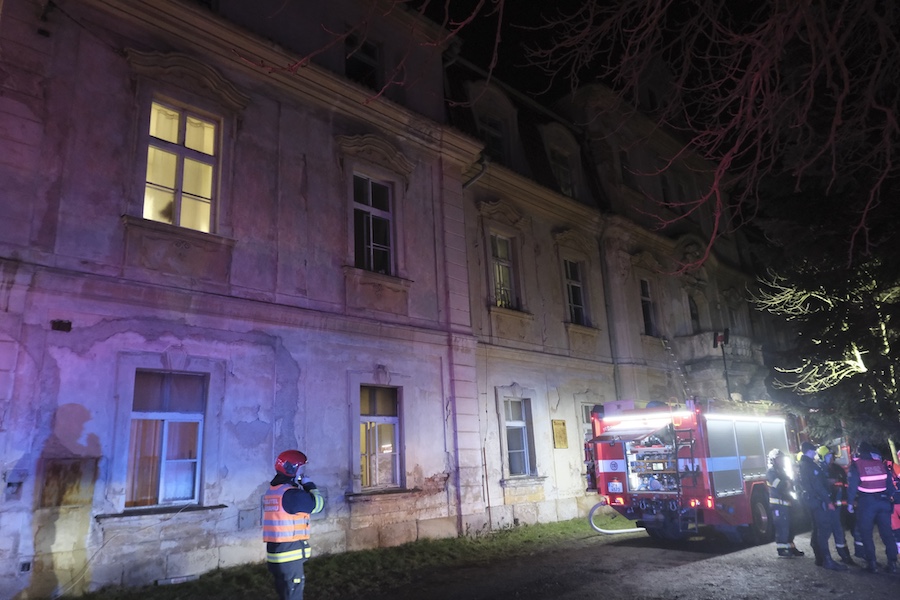 Požár ubytovny v Malesicích: Hasiči zachránili 16 lidí, čtyři skončili v nemocnici