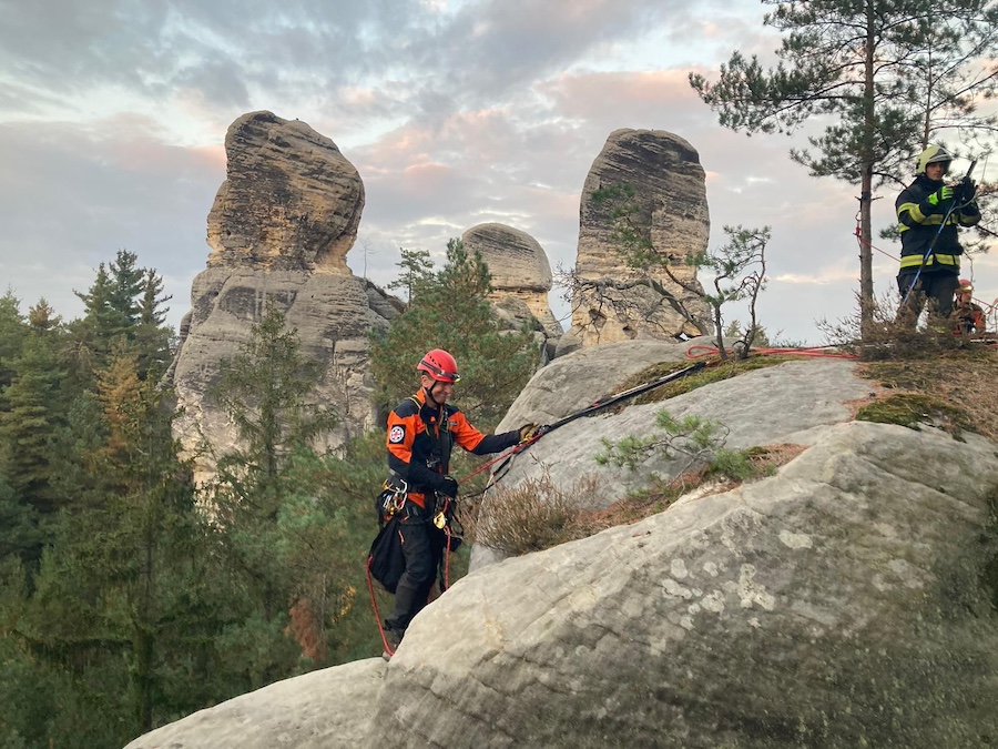 Kůň uváznul v náročném kamenitém lesním terénu a nemohl se postavit na nohy. „Zasahující hasiči lanovými úvazky kolem trupu lichokopytníka zabezpečili a za pomoci ručního lanového navijáku a kladkostroje jej společnými silami přesunuli nejprve o několik metrů z toho nejnáročnějšího terénu,“ popsala mluvčí hasičů.
