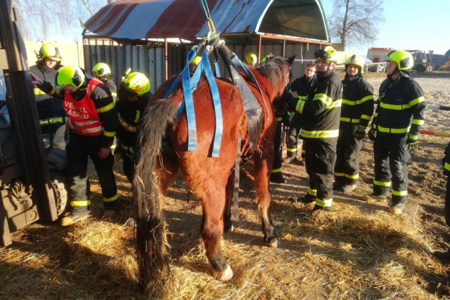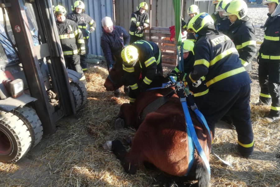 Operační středisko hasičů vyslalo na místo jednotku z Bílovce a dobrovolnou jednotku hasičů ze Studénky. Po příjezdu hasiči provedli rychlé vyhodnocení situace a velitel zásahu si na místo povolal jednotku z Ostravy-Přívozu, která je určená na záchranu zvířat. „Pro bezpečné manévrování se hasiči rozhodli koně šetrně vytáhnout ven ze stájí na volné prostranství. Pomocí speciální záchranné sítě určené pro manipulaci s velkými zvířaty a vysokozdvižného vozíku se jim podařilo koně postavit zpět na nohy,“ sdělila dále mluvčí. Po úspěšném zásahu jednotky předaly zvíře zpět majitelce. „Při zásahu kůň neutrpěl žádná zranění a celá akce proběhla hladce a bez komplikací,“ uzavřela Lukášová.